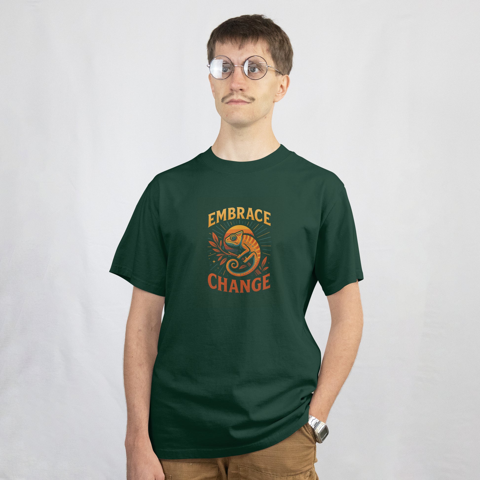Step into bold style with the Embrace Change tee. Featuring a beautifully illustrated chameleon surrounded by nature-inspired details, this design is a reminder of adaptability and growth. Perfect for those who thrive on transformation and love showcasing unique, meaningful art through fashion.