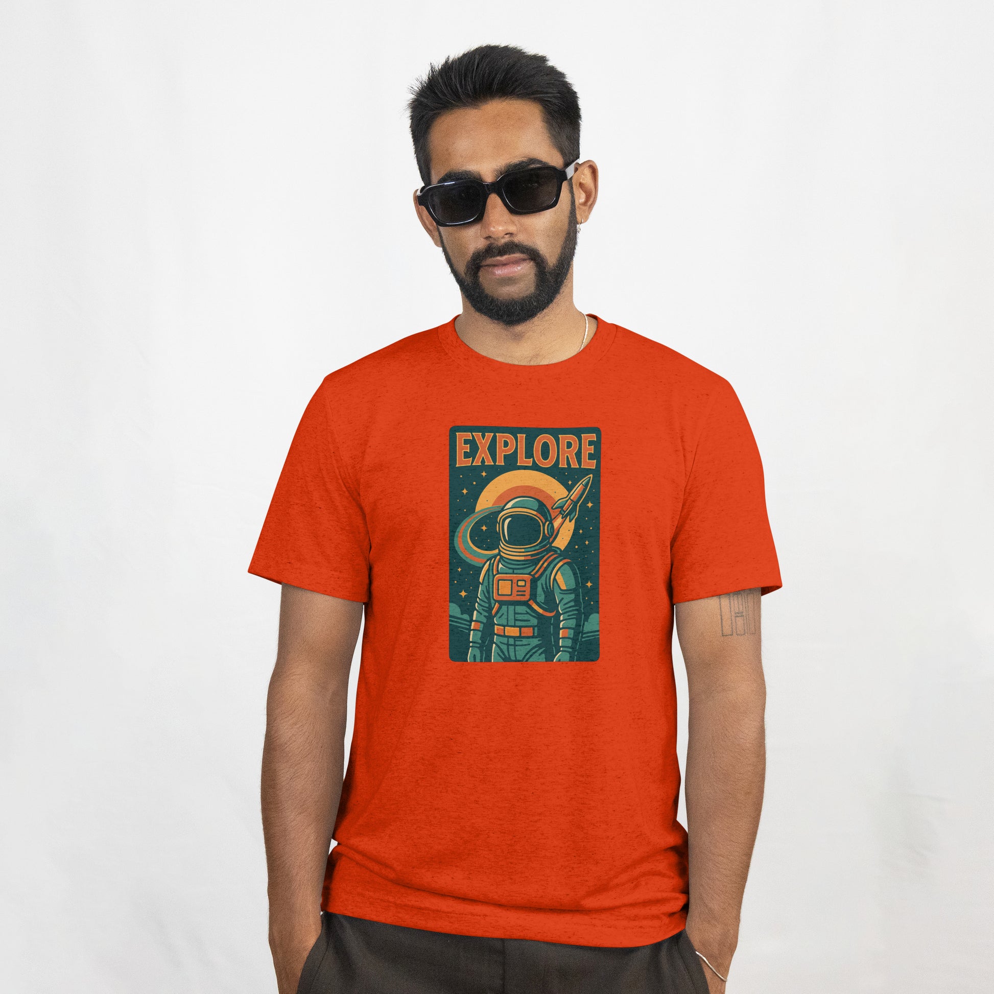 Adventure knows no limits with the Explore tee — a timeless design that captures the thrill of discovery and the spirit of curiosity. Featuring a vintage astronaut illustration set against a cosmic sunset, this piece blends retro art with futuristic vision, perfect for those who dare to go beyond.