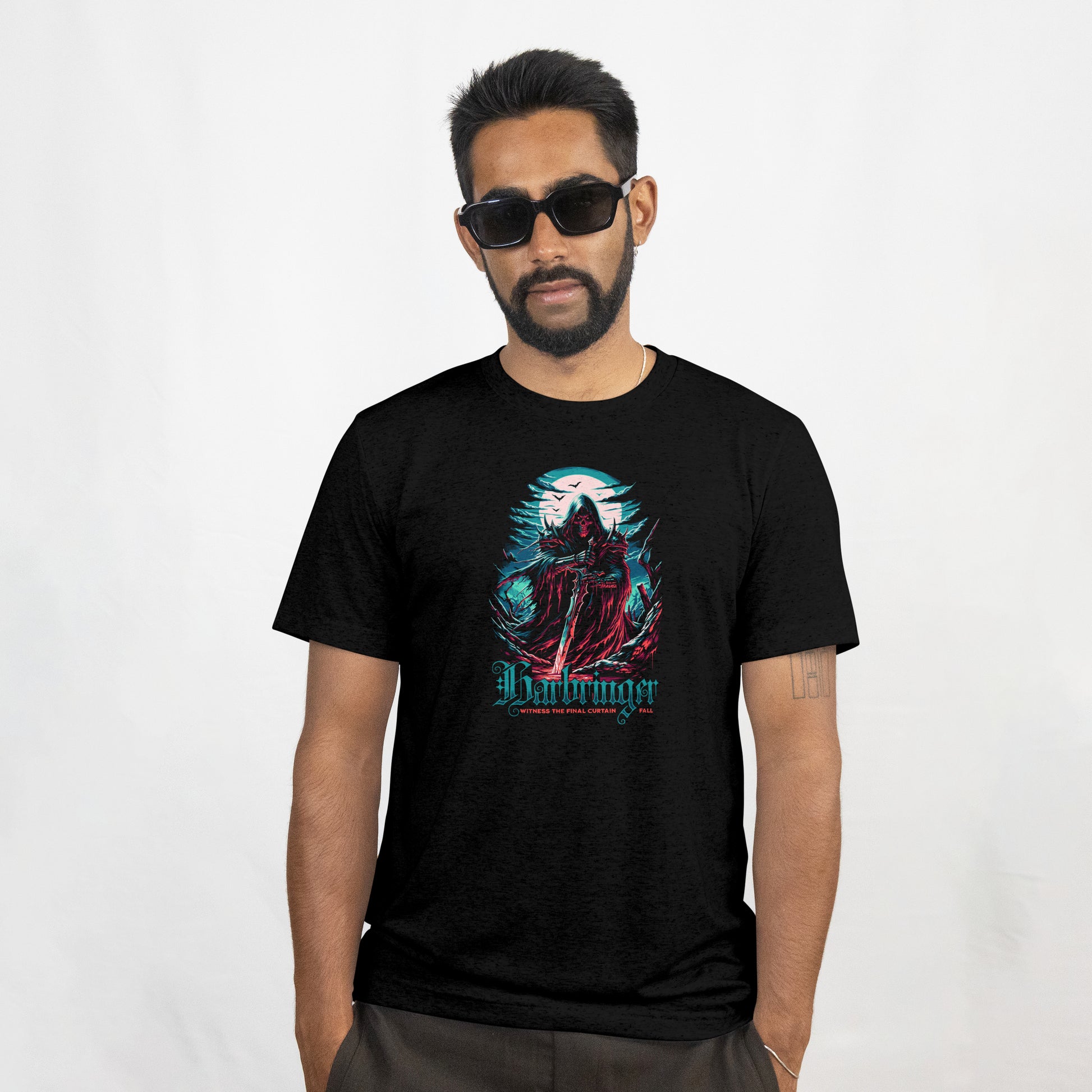 Step into the darkness with The American Record’s “Harbinger” Tee — a masterpiece for those who embrace power, mystery, and rebellion. Crafted in deep black cotton, this tee features an electrifying gothic design of the Harbinger, cloaked in crimson, standing beneath a haunting full moon — symbolizing the fall before the rise.