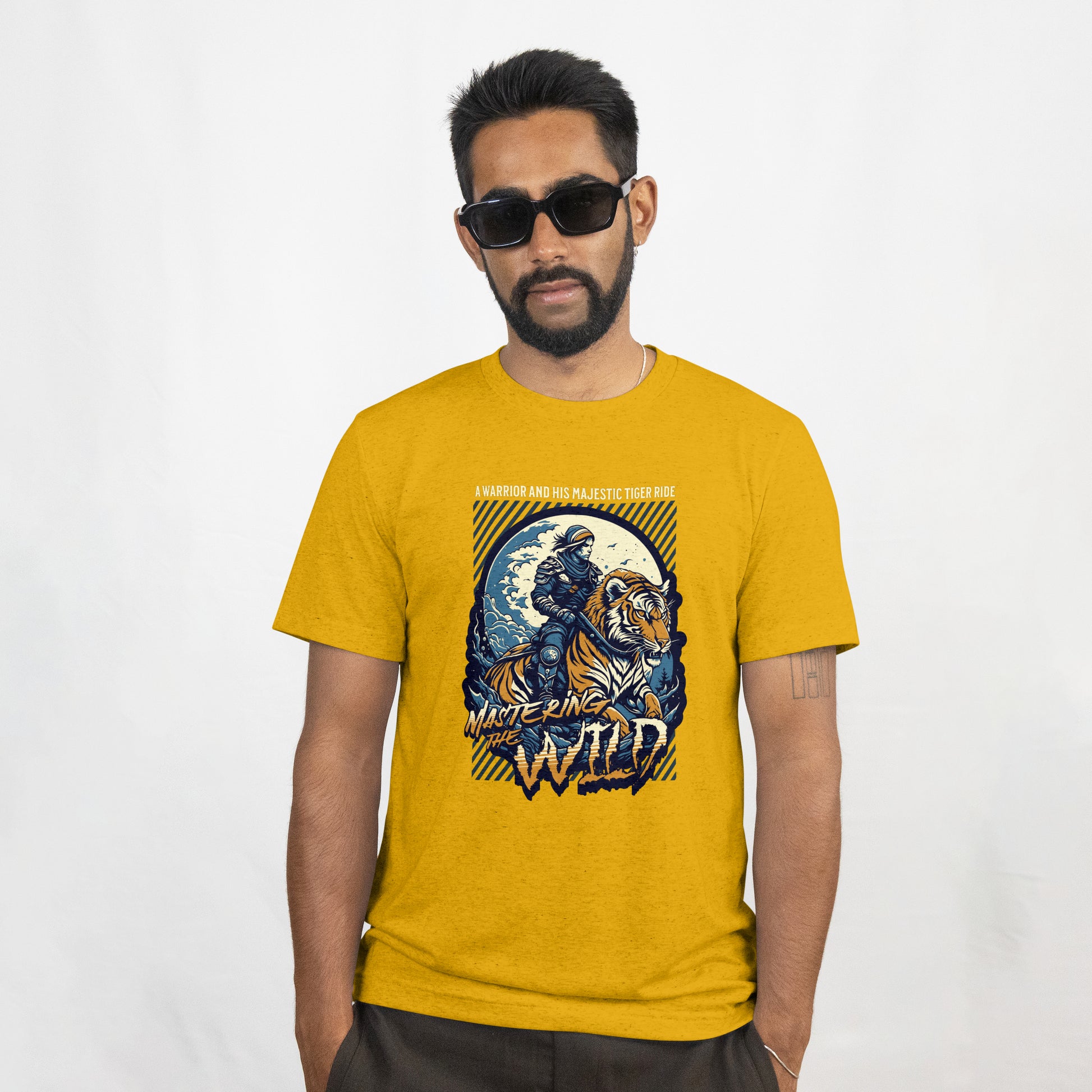 Unleash your fearless side with Mastering The Wild, a T-shirt that roars with strength, courage, and adventure. Featuring an epic illustration of a warrior riding a majestic tiger under a glowing moon, this design symbolizes domination, freedom, and power in motion.