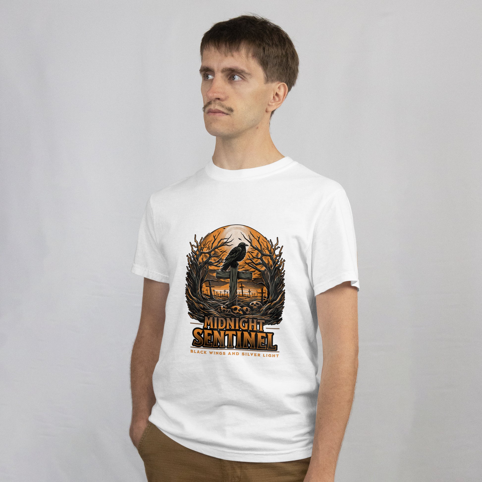Stand guard in timeless style with the Midnight Sentinel T-shirt — where vintage art meets dark elegance. Featuring a powerful black raven perched against a haunting twilight sky, framed by twisted branches and gothic textures, this design symbolizes mystery, wisdom, and silent strength.