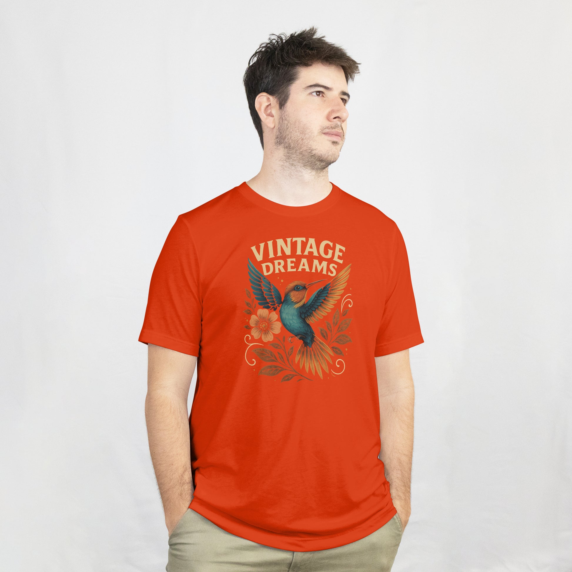 Step into timeless style with the Vintage Dreams T-Shirt, featuring a bold hummingbird illustration surrounded by florals and leaves. This piece blends retro-inspired artwork with modern comfort, making it perfect for anyone who wants to showcase their individuality.
