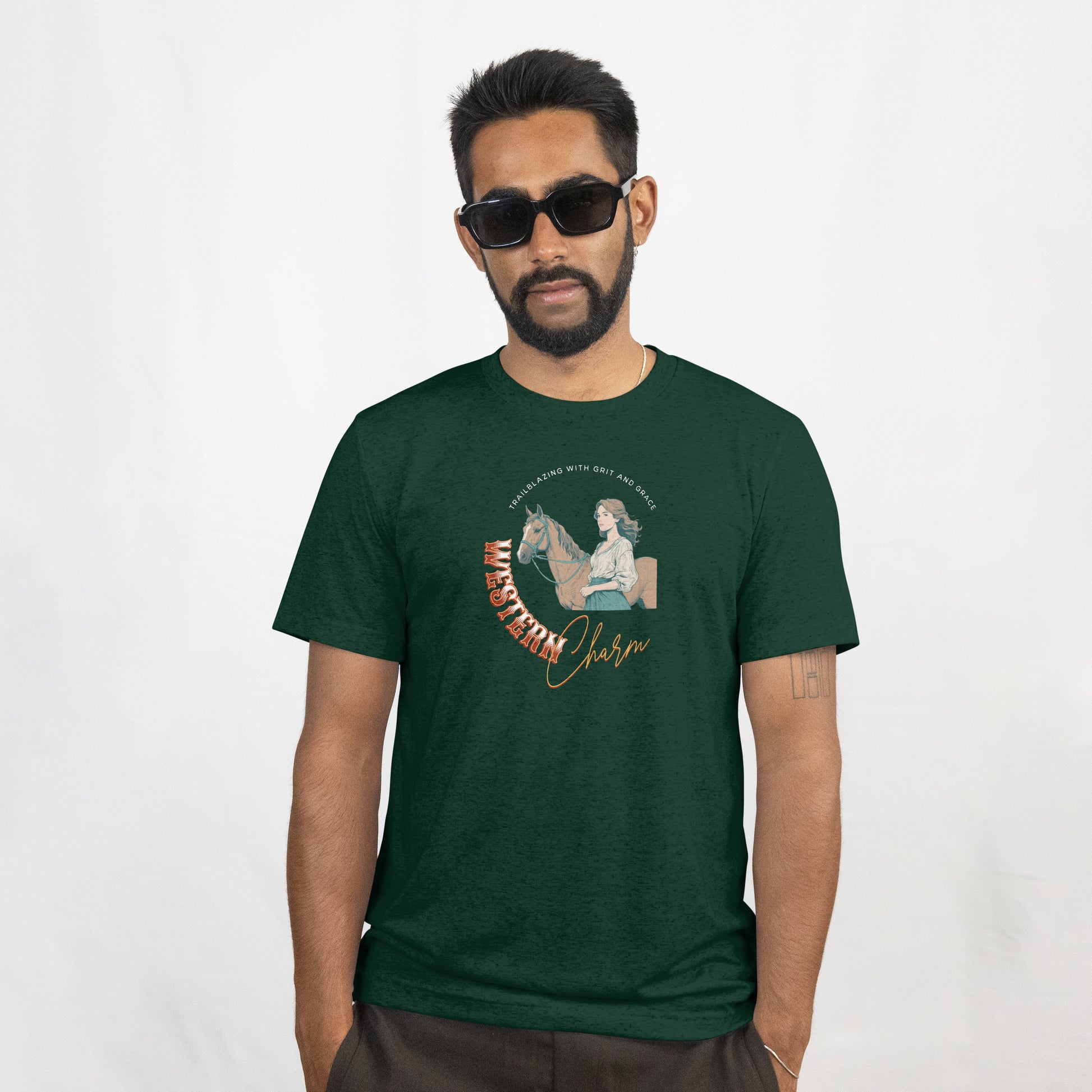 Embrace the essence of the Wild West with our Western Charm T-Shirt, where grit meets grace. This unique tee showcases a breathtaking graphic of a rider and horse, elegantly merging traditional heritage with modern streetwear. Perfect for those who seek adventure and style in every moment!